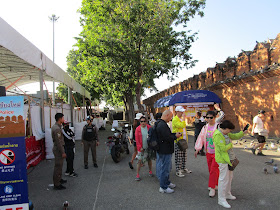 I signed up for one of those "free walking tours," where you pay by tips at the end of the tour.  The group is supposed to meet at 9:00 a.m. at the Tha Phae Gate on the east side of the historic inner city of Chiang Mai.  The historic inner city is a square with a moat around the perimeter.